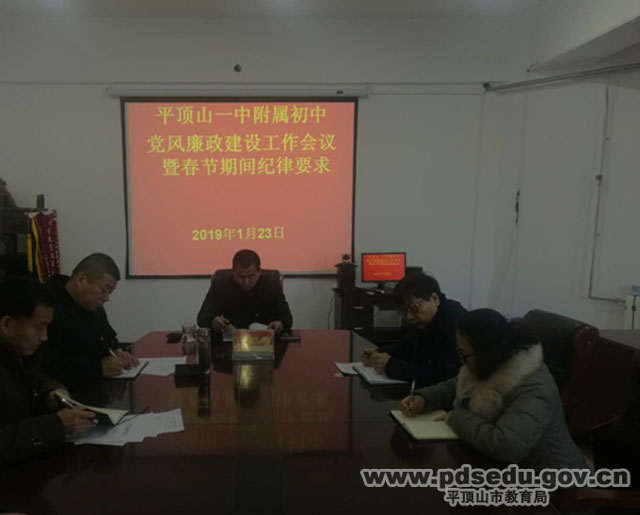 [图]平顶山一中附属初中召开2019年党风廉政建设专题会议暨春节期间纪律要求