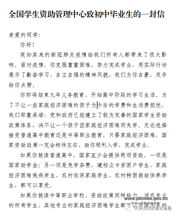 选中职康庄路 成就出彩人生——致2020届初中毕业生的一封信
