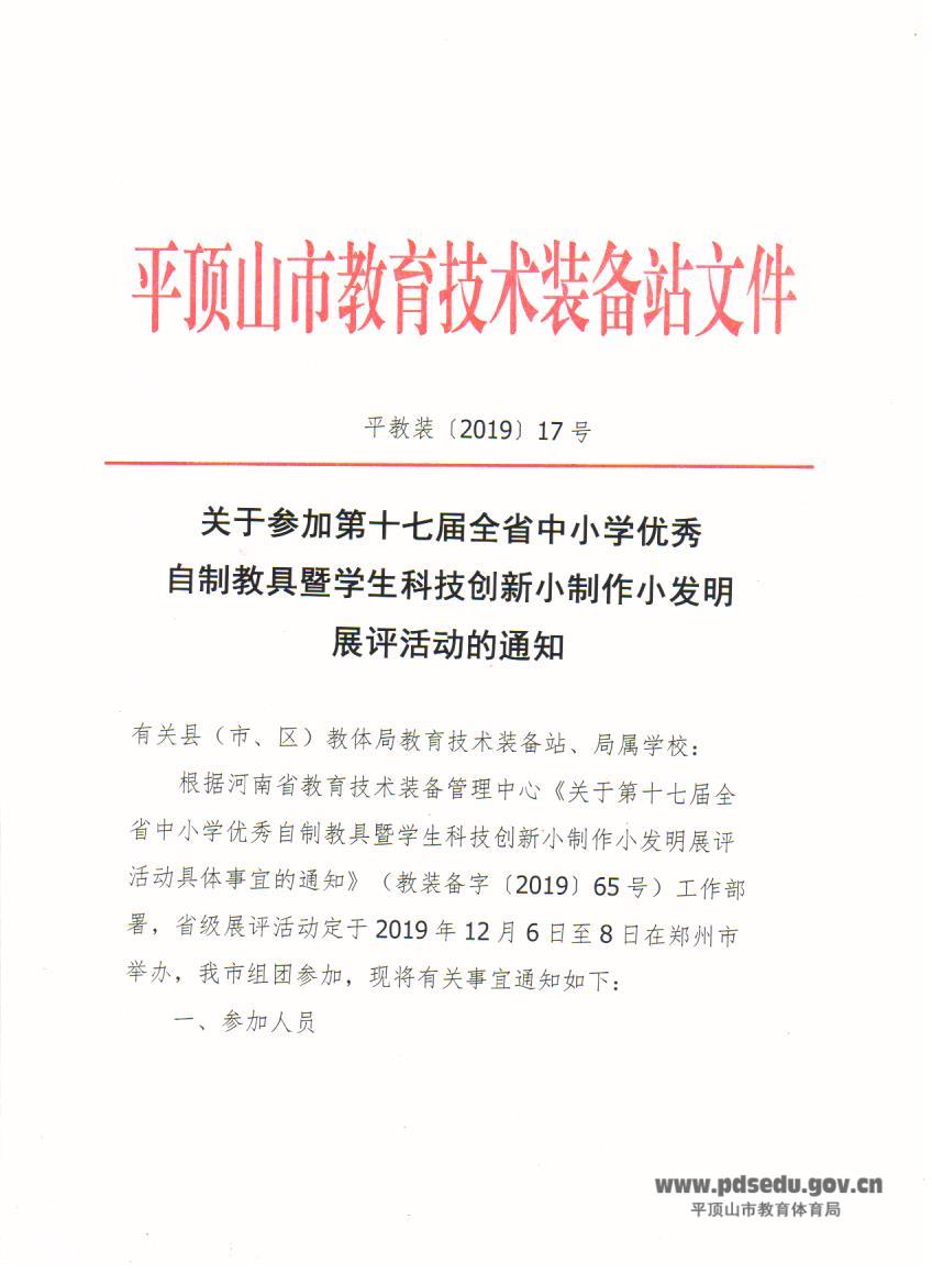 关于参加第十七届全省中小学优秀 自制教具暨学生科技创新小制作小发明 展评活动的通知