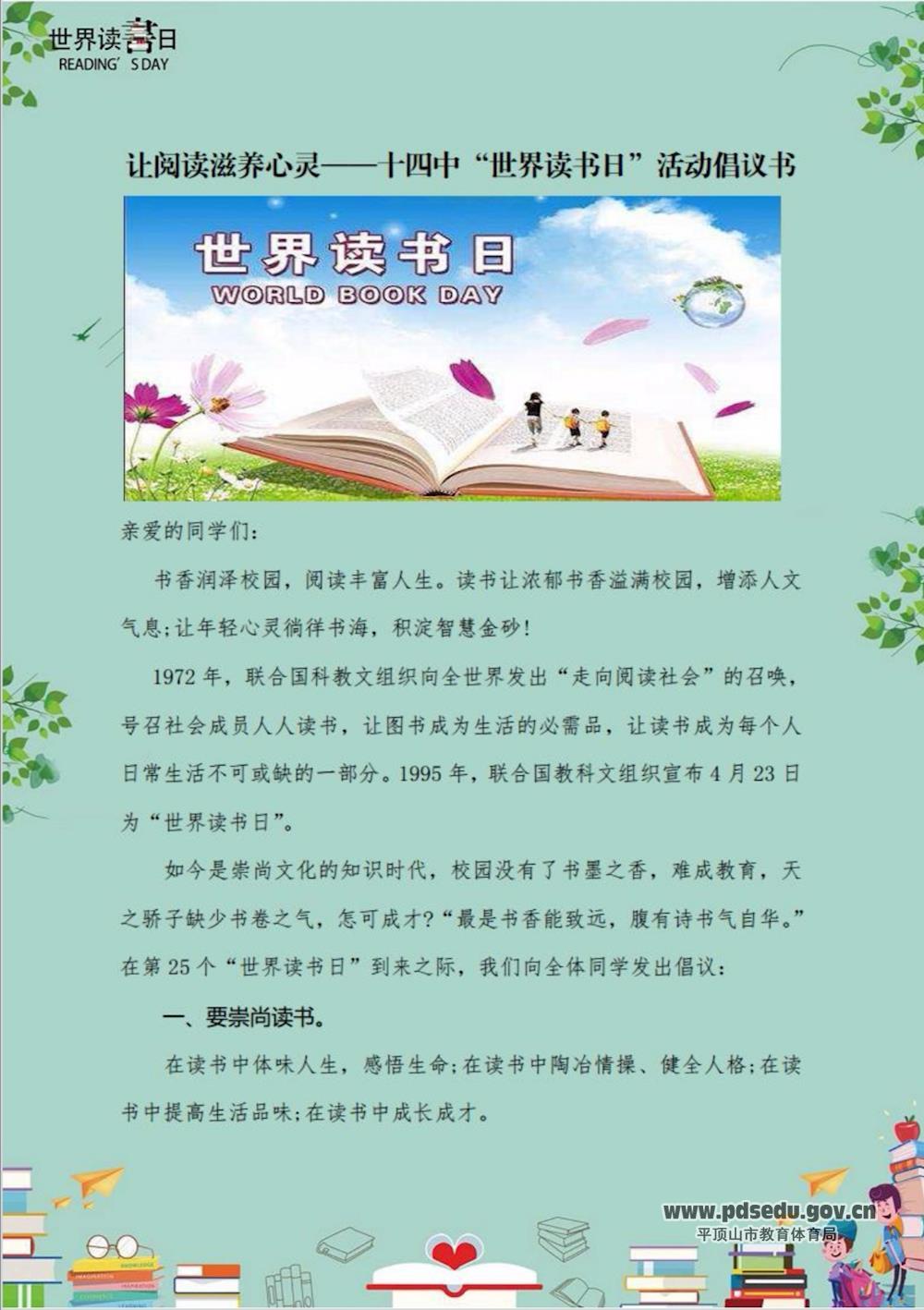 [图]阅读 求知 善行 ——市十四中:举行“世界读书日”主题征文活动