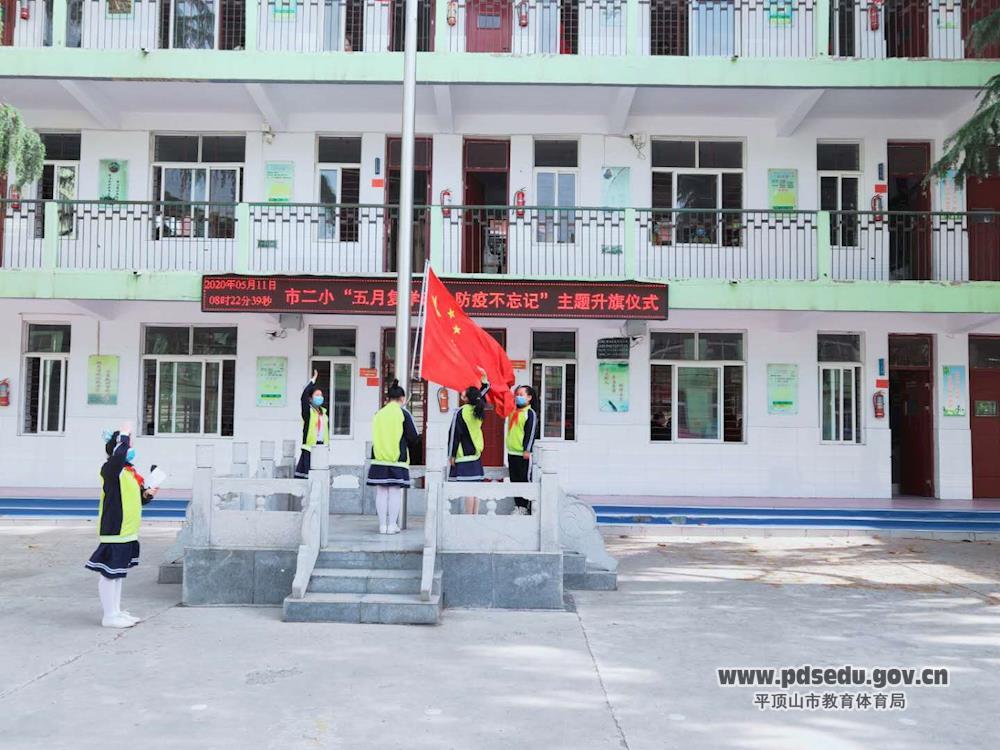 [图]五月复学时,防疫不忘记 一一舞钢市第二小学举行主题升旗仪式
