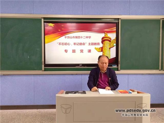 [图]平顶山市第四十二中学召开“不忘初心、牢记使命”主题教育专题党课