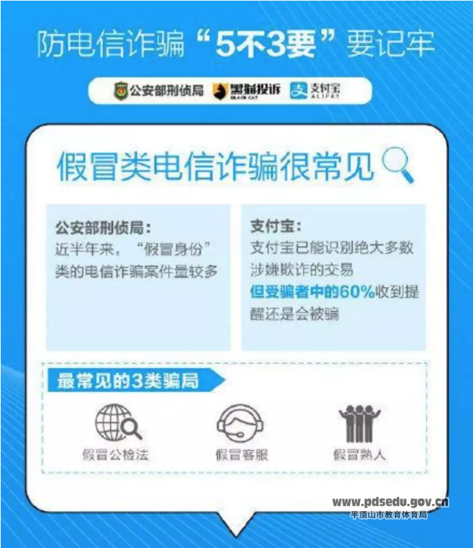 谨防假冒公检法、假冒客服和假冒熟人类电信网络诈骗 牢记“5不3要”