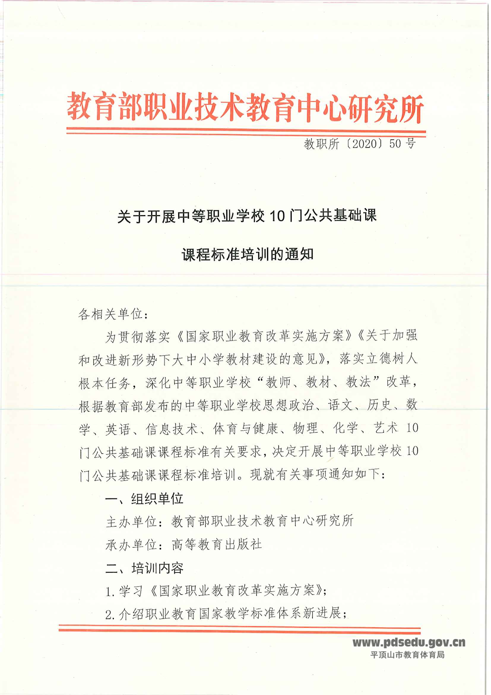 转发教育部职业技术教育中心研究所《关于开展中等职业学校10门公共基础课课程标准培训的通知》