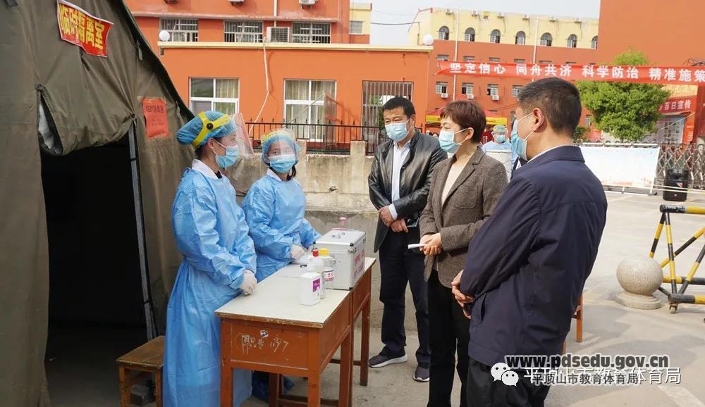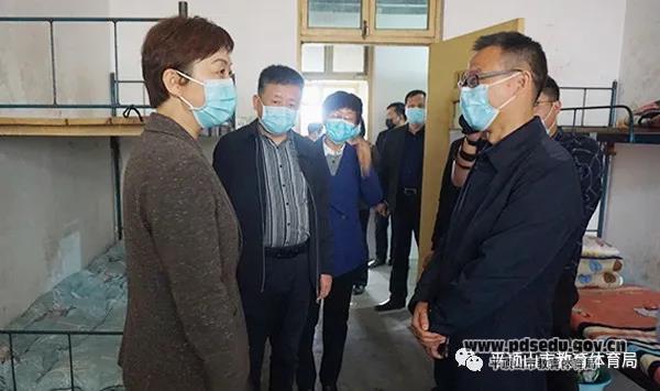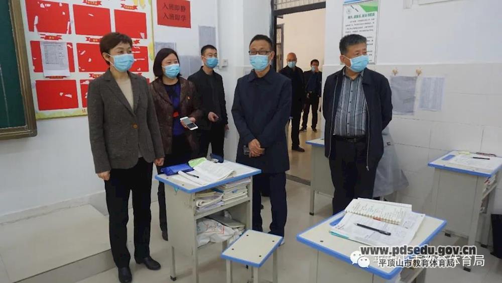 刘颖在市教体局党组书记、局长邱红标和叶县副县长王红敏的陪同下,先后来到叶县二高、叶县高中,实地察看高三教室、食堂、宿舍等重点场所和校园消毒、疫情防控设施设备,详细询问了解学校高三学生人数、教师人数,听取教育部门有关防疫工作方案、人员管控、防疫物资储备等情况汇报。