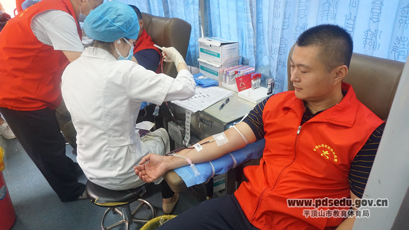 在近3个小时的献血活动中,市教体局共27名志愿者参与献血活动,符合献血条件的21名志愿者共献血7200毫升。