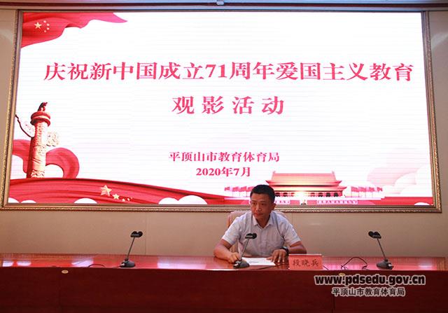 | 繁体 | 网站已支持ipv67月31日下午,平顶山市教育体育局在二楼会议厅开展庆祝中华人民共和国成立71周年爱国主义教育观影活动,组织干部职工集中观看爱国主义教育影片《红海行动》。活动由市教育体育局副调研员段晓兵主持。机关各科室及二级机构干部职工120余人参加活动。