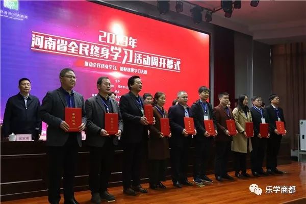 省教育厅党组成员、副厅长陈垠亭在讲话中指出:近年来,我省终身教育和全民学习工作成效显著。一是政策措施保障到位。2017年下半年,省政府印发了《河南省老年教育发展规划》,省教育厅等九部门联合印发了《关于大力推进社区教育的意见》,《中共河南省委河南省人民政府关于加快推进学习型社会建设的实施意见》也即将出台,政策措施保障逐步到位。二是网络体系不断完善。我省初步构建了以“省辖市社区大学为龙头、区县社区学院为骨干、乡镇社区学校为主体、社区居民学习点为基地”的四级社区教育体系。目前,全省18个省辖市已成立社区大学15所、县区级社区学院74所、街道(乡镇)社区学校2599所。三是示范引领强力推进。自2014年以来,共创建了2个国家级、27个省级社区教育示范区,4个国家级、30个省级社区教育实验区,10个河南省示范性县区级社区学院,20个河南省示范性乡镇街道社区学校,这些单位充分发挥示范引领作用,不断辐射带动周边区域提高社区教育工作水平。郑州等11个城市成为全国学习型城市建设联盟单位。四是品牌创建特色鲜明。培育了31个全国终身学习品牌项目和72个河南省终身学习品牌项目、27位全国百姓学习之星和107位河南省百姓学习之星,带动了广大群众参与终身学习、热爱终身学习。五是常态机制逐步形成。自2011年起,我省已先后在平顶山、郑州、新乡等地举办了七届河南省全民终身学习活动周开幕式,吸引了越来越多的企事业单位、学校、社区、社会机构、社会志愿者的关注、参与,支持全民终身学习活动,使学习形式和内容更加丰富多彩,受益群体更加广泛。