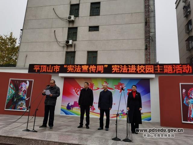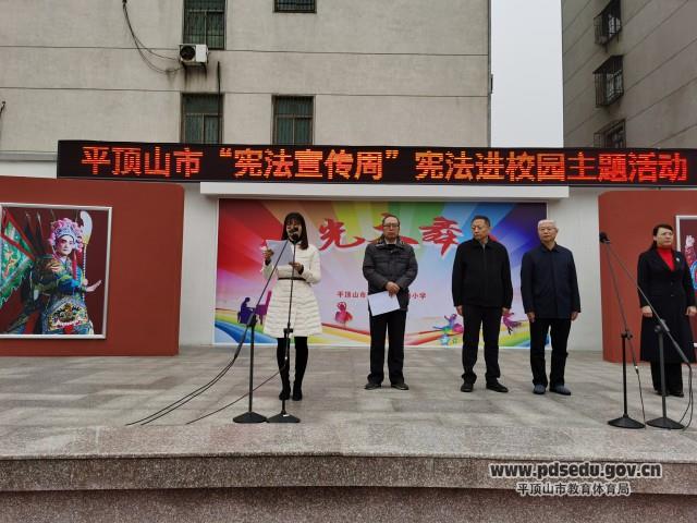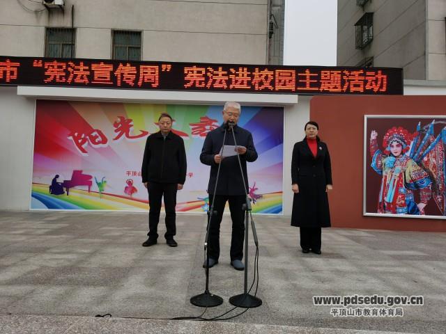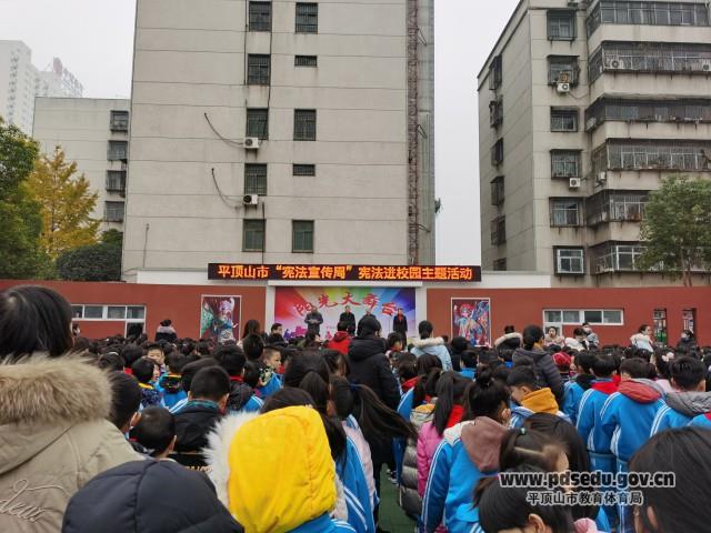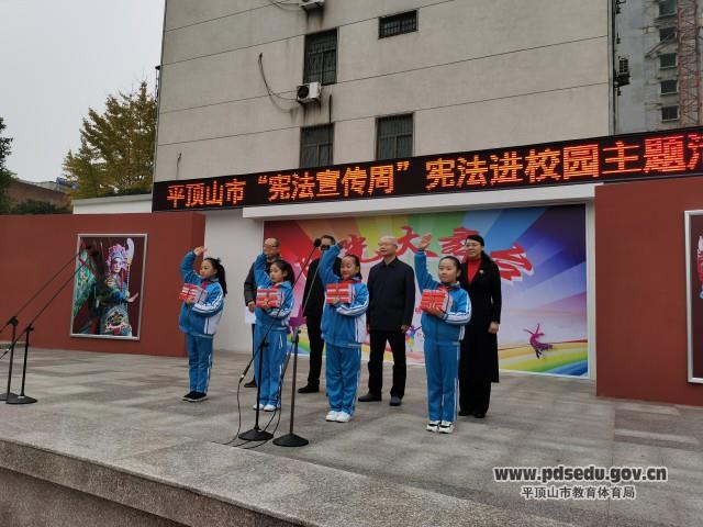 为深入学习贯彻落实党的十九大和十九届二中、三中、四中、五中全会精神,深入学习宣传习近平法治思想,弘扬宪法精神,维护宪法权威,推动宪法全面实施,根据市委宣传部、市司法局关于“宪法宣传周”活动的通知要求,市教体局和市普法办12月1日在光明路小学联合举办平顶山“宪法进校园”主题宣传活动。