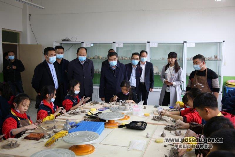 在宝丰县,陈垠亭先后到中兴路小学、香山路小学、县二中学校,实地察看了功能室、建设工地等场所,了解学校规模、招生区域、教师配备、社团活动开展及教育项目建设进度等基本情况,对宝丰县义务教育学校教师“县管校聘”、课后延时服务、思政教育、阅读教育等工作给予充分肯定。
