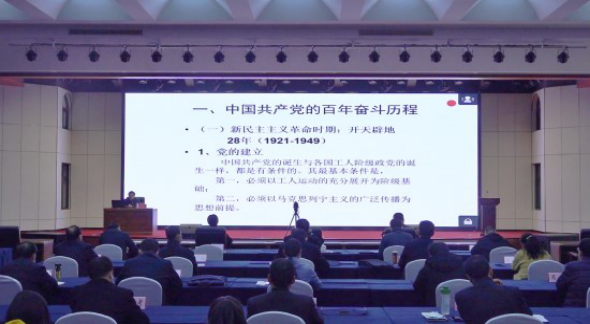 赵士红教授以中国共产党百年来的奋斗历程和基本经验为主题,着重从中国共产党的百年奋斗历程、中国共产党奋斗取得的辉煌成就、中国共产党奋斗积累的基本经验三个方面,深刻解读了中国共产党为理想信念、国家独立、民族复兴、人民幸福而进行的艰苦卓绝的救国、兴国、富国、强国奋斗史,深刻阐释了中国共产党人的初心和使命。