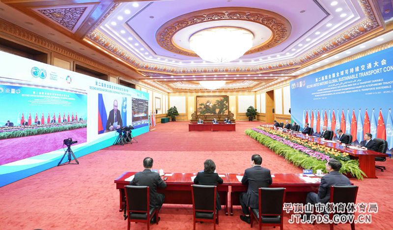 第二届联合国全球可持续交通大会于10月14日至16日以线上线下相结合方式在北京举行。俄罗斯总统普京、土库曼斯坦总统别尔德穆哈梅多夫、埃塞俄比亚总统萨赫勒-沃克、巴拿马总统科尔蒂索、荷兰首相吕特、联合国秘书长古特雷斯等应邀以视频方式发表致辞。171个国家的代表出席了开幕式。
