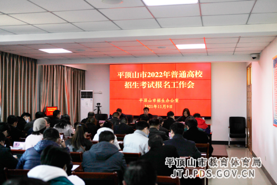 | 繁体 | 网站已支持ipv6根据省招办统一安排,2022年全省普通高校招生考试报名工作将于2021年11月10日开始。为全面做好我市报名工作,在对报名工作作出前期安排的基础上,2021年11月9日,平顶山市招生办公室专门召集各县市招办主任、信息员,市区各普通高中、中等职业学校的业务副校长、信息管理员以及高校有关负责同志开会,学习贯彻省招办文件精神,全面安排我市高考报名工作。