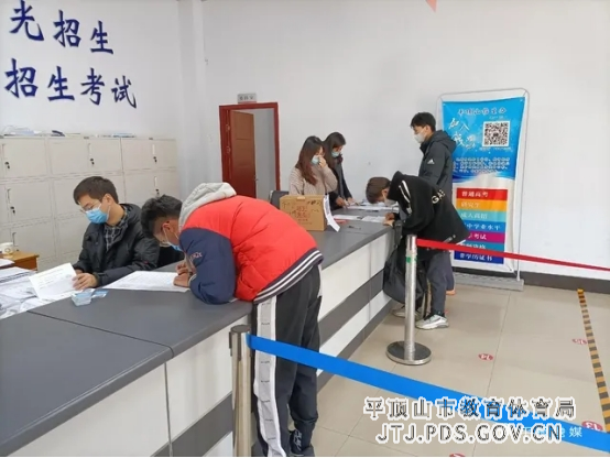 在报名现场,服务大厅内开设三条报名通道,考生携带身份证、户口簿等证明,填写高招考生诚信承诺书、报名疫情防控承诺书等,领取报名序号后,方可高招网上报名。