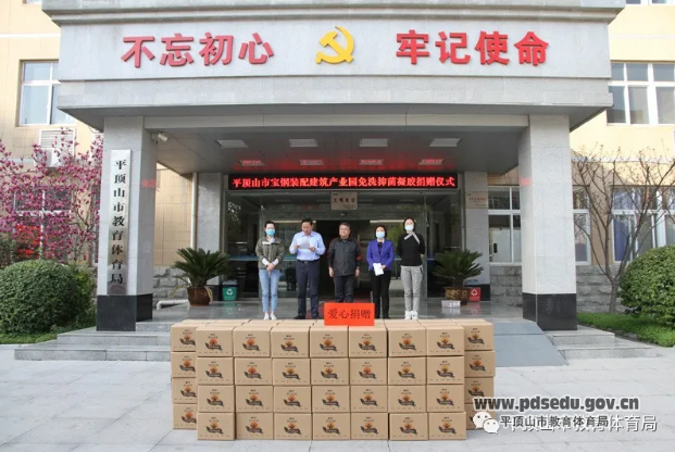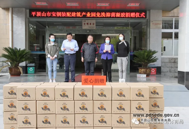 3月20日下午,上海宝钢建筑设计有限公司河南分公司——平顶山宝钢装配式建筑产业园免洗抑菌凝胶捐赠仪式在市教体局举行,为市教体局直属学校和新城区教体局分别捐赠100箱免洗手抑菌凝胶,每箱12瓶,总价值10万元。平顶山宝钢装配式建筑产业园董事长吕海涛、董事张蓓蓓、副总经理谢景佩、项目经理戚栋汀,河南野孩子文化教育有限公司总经理巴米乃,市教体局党组成员、副局长张国顺,机关相关科室及市直学校参加捐助仪式,市教体局党组成员、副局长苏红英主持捐助仪式。