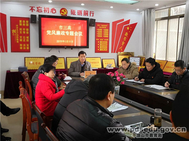 1月11日上午,市三高在东二楼会议室召开党风廉政建设工作会议,总结2018年工作,部署2019年党风廉政建设工作。学校领导班子成员、全体中层以上干部参加会议。会议由校长张建岭主持。