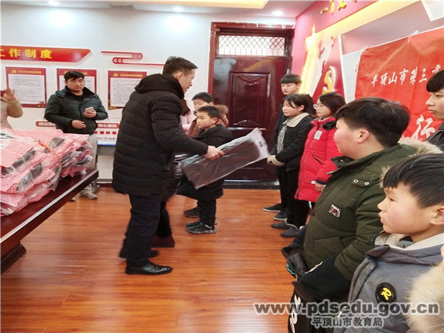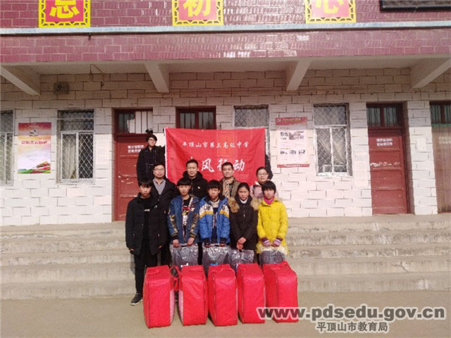 寒风凛冽,冬日严严,帮扶学校孩子的现状时刻牵挂着市三高师生的心,1月16日上午,带着全校师生以及社会爱心人士董全生先生的牵挂与爱心,市三高校长助理解伟,后勤主任薛进联等一行4人驱车前往鲁山帮扶学校:鲁山实验学校、石坡头初级中学进行春风帮扶慰问活动。