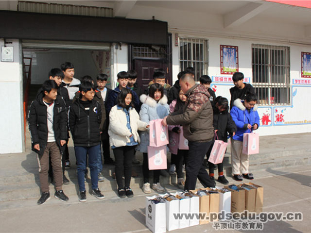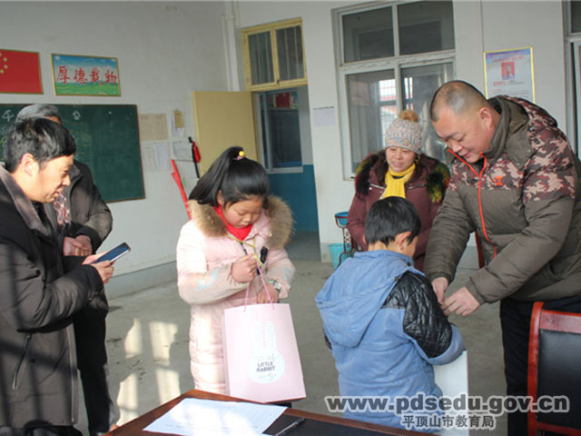 寒冷冬日送温暖,春风助学在行动。为扎实推进教育精准扶贫工作,深入开展“基础教育百千万帮带春风行动”,1月16日上午,市八中副校长徐劲松带领部分中层干部一行人,赶赴叶县习楼小学、育才小学、小河赵小学、叶县回民中学和辛店镇初级中学,开展“春风行动”为五校被帮扶学生送去冬日的爱心。