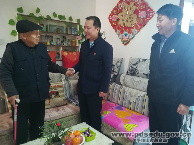 1月23日,市特殊教育学校校长林亚南、副校长娄晓宇、丁光辉、石春山及工会委员会人员一起对学校退休教师、困难党员和退役军人进行了春节慰问活动。