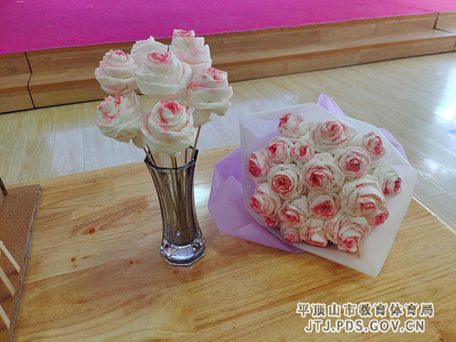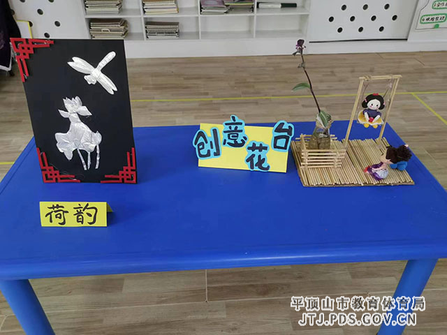 参赛的保育员十分重视这次比赛,比赛前,大家积极准备,从创意到选材,从设计到运用……可谓是人人都下了“真功夫”。有的向身边的老师请教设计、构图思路、绘画技巧,有的则是上网查询不错的参考作品并进行创新改造,利用丰富资源,巧妙运用不同材料,精心设计了一件件高颜值的手工作品。有桌面益智玩具《足球宝贝》《河马刷牙》、体育器械《跳跳球》《飞盘》、艺术作品《粉红玫瑰》《荷韵》《笔筒》《孔雀开屏》《扎染围巾》、手工编织《花篮》、剪纸艺术《花开富贵》、戏曲头饰......惟妙惟肖,栩栩如生,令在场的领导和老师们啧啧称赞。
