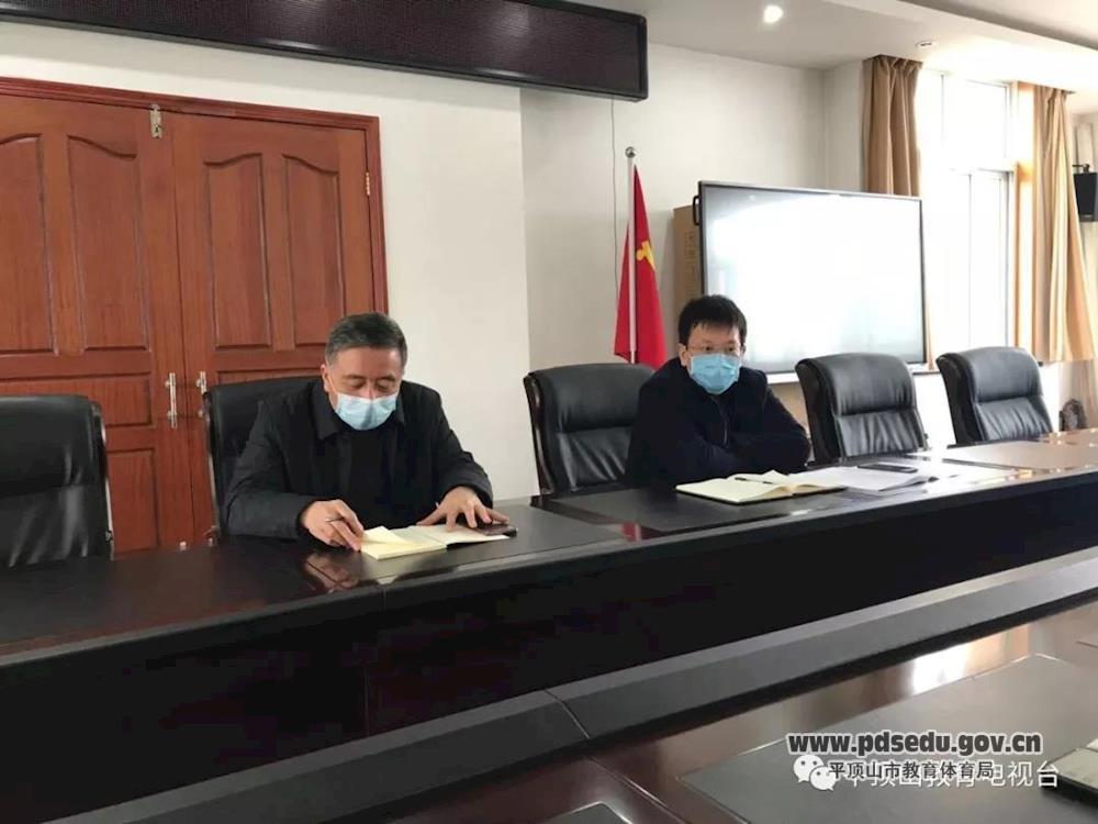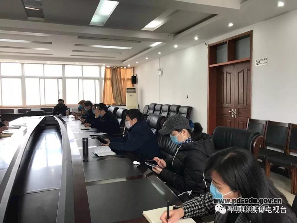 会上传达了平顶山市新型冠状病毒肺炎疫情防控指挥部关于成立平顶山市新冠肺炎疫情防控教育体育系统工作专班的通知精神,明确了工作专班的目标和职责,成立了教育教学专班组的综合、教学和教学技术保障三个小组,负责协调各单位做好疫情防控期间的远程教学和技术保障;统筹教学规划,指导学校做好教学综合保障工作等。