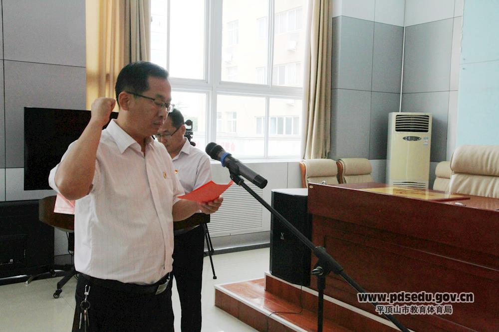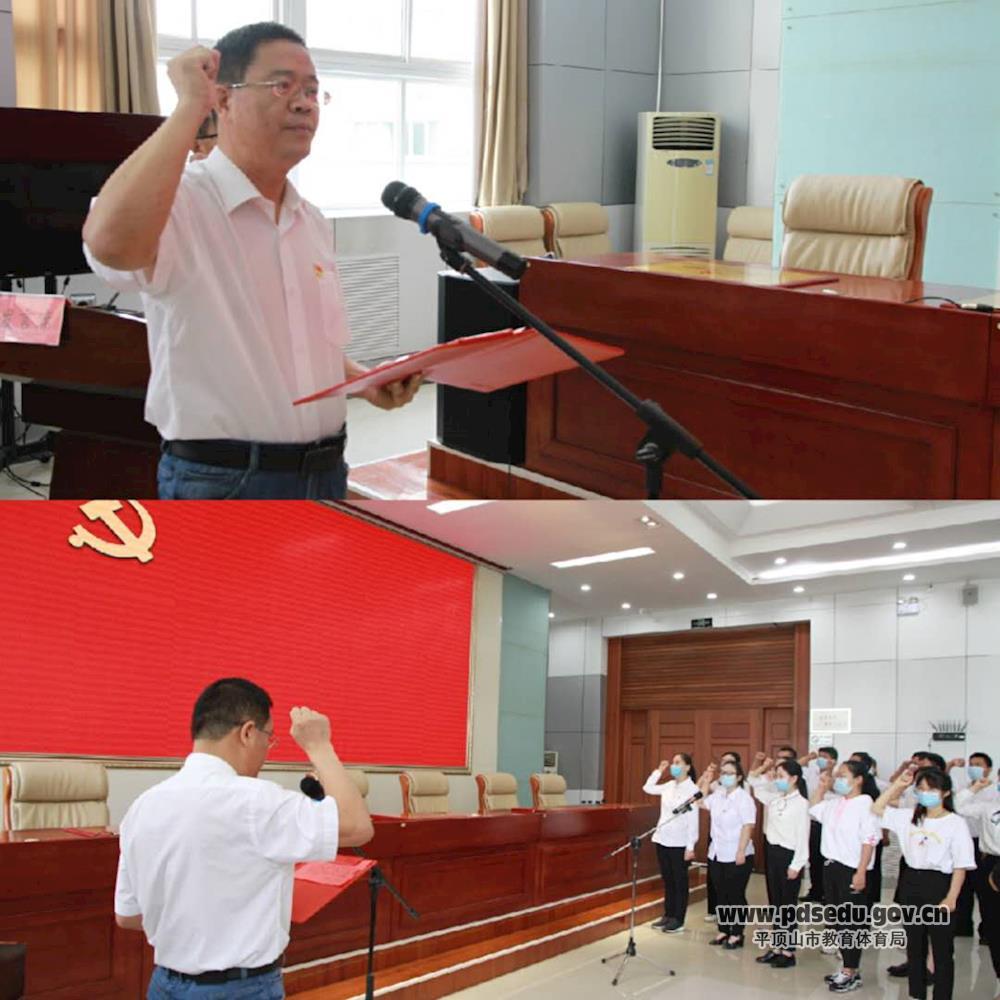 机关党委委员、市四十一中党支部书记、校长杜均珩带领新党员进行入党宣誓,老党员一同重温入党誓词。市四十四中党支部书记、校长张宏伟带领转正党员进行廉政宣誓。