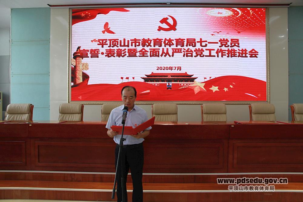 会议在雄壮的国际歌中拉开序幕,机关党委委员、基础教育科科长薛建军同志宣读了2020年市教育体育局直属系统新发展党员和转正党员名单。