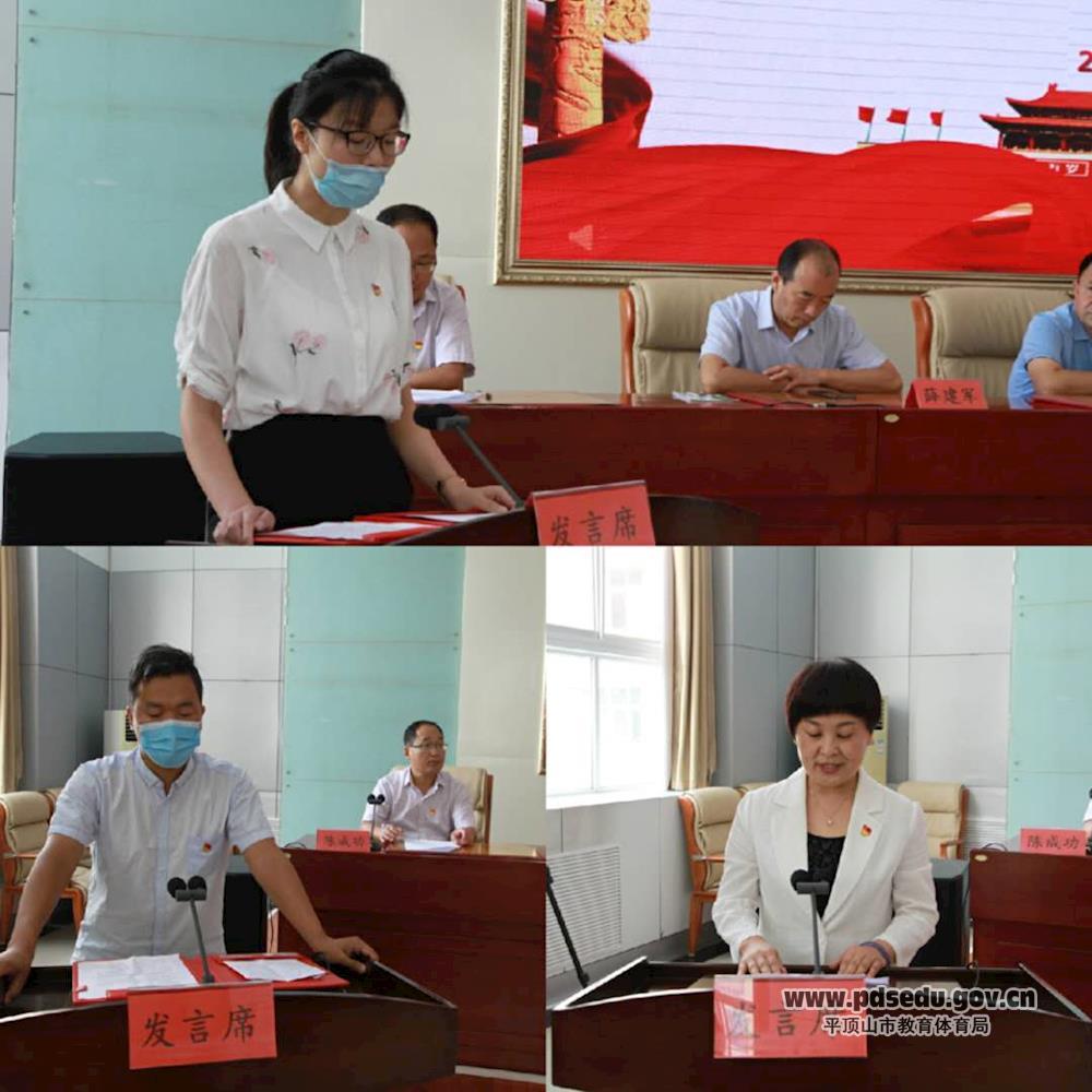 会上,市教体局督导室杨一凡同志代表新党员进行了发言,市一高姬东艳同志,市实验高中王晓建同志,平东幼儿园党支部书记、园长赵惠芳同志分别代表受表彰的优秀党员、优秀党务工作者和先进基层党组织进行了发言,在发言中表达了入党初心,抒发了为党情怀,倡议全体党员及全体教职员工积极投身党的建设,在履职尽责中诠释使命担当。