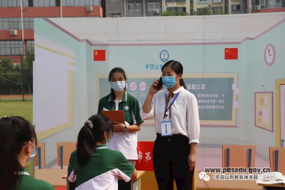 此次演练活动模拟学生入校检查、午检、宿舍就寝3个场景,内容包括进校门例行检查、学生体温检测、体温异常人员发现与报告、隔离观察、转运与治疗、情况通报与健康宣教、联防联控、风险解除等环节。上午9点30分,随着总指挥段晓兵的一声指令,全市教体系统秋冬季疫情防控应急演练正式开始。参与演练的师生按照演练方案模拟各个场景,从错峰入校,到体温检测,再到晚上就寝,每个环节严格按照流程要求进行,应急处置操作规范。现场解说员在对每个环节进行详细解说的同时,还普及了个人防护服穿戴全流程、七步洗手法、如何正确测量体温等防护知识。