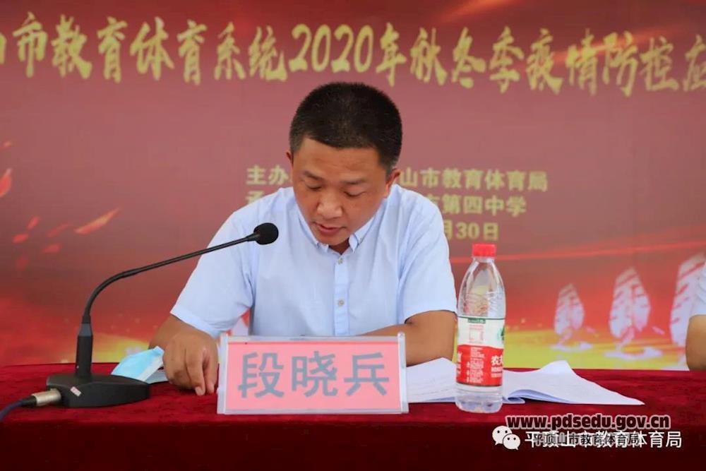 段晓兵在组织演练时指出,学校开学在即,全市教体系统要提高政治站位,充分认识秋冬季疫情防控面临的严峻形势,做好常态化防控特别是秋冬季可能出现疫情的应对准备。他要求各单位要以此次疫情防控应急演练为契机,把组织开展疫情防控应急演练作为秋冬季疫情防控工作的一项重要任务,迅速拟定本单位演练方案并组织人员开展演练;要坚决杜绝麻痹思想、侥幸心理、松劲心态,坚持“强弱项、补短板、建机制”的工作思路,认真总结,查漏补缺,完善方案,全力做好疫情防控各项工作。最后,他代表平顶山市新冠肺炎疫情防控教育体育系统工作专班办公室向承办演练活动的市四中和参加演练的各位师生及医护人员表示感谢。
