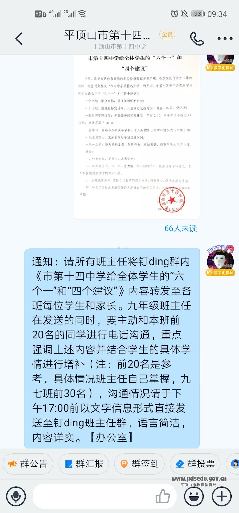 为了不让疫情影响九年级学生的学习进度,以校长万邦浩、书记刘彩虹为首的学校领导班子迅速调整工作思路,安排教务处牵头,成立了由九年级各学科教研组长、备课组长为核心成员的九年级自学指导小组,牺牲休息时间,认真集体备课,精心选择试题,经过一天的准备,为全体九年级学生制定了特殊时期的学习要点和重点,由九年级各班主任发送到钉钉群里,每个学生按照老师的要求,按时打卡,把每天的学习情况上报,由班主任、任课教师共同监督,并为学生答疑解惑。