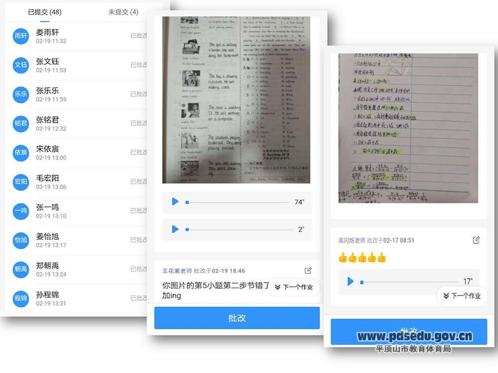 为了保证线上教学的质量,各位老师“八仙过海,各显神通”,多样化地开展自己的教学内容。地理组老师装备齐全,将投影仪和黑板合理化运用到这次网络教学中,学生们的观看学习效果更赞了!体育组的老师们,创新教学方法,通过动作示范、视频指导、在线监督打卡等方式保证了孩子们的体育锻炼时间。对九年级师生而言,疫情来势汹汹,将原本的开学计划全部打乱,时间紧任务重,面临的压力不言而喻。为更好地确保学生线上学习达到预期效果,老师们付出了巨大的努力。作为九年级的班主任,许多老师还承担几百名学生的教学工作。这段时间,老师们的钉钉、微信几乎从未下线,除了教研工作之外,还要指导学生登录网站、参与学习、在线互动,并跟进课后作业批改、答疑解惑,确保学生线上、线下学习“无缝衔接”。这两天已是深夜,打开钉钉,我们依然可以发现,老师们在线上批改作业、交流探讨的热情没有丝毫减少。