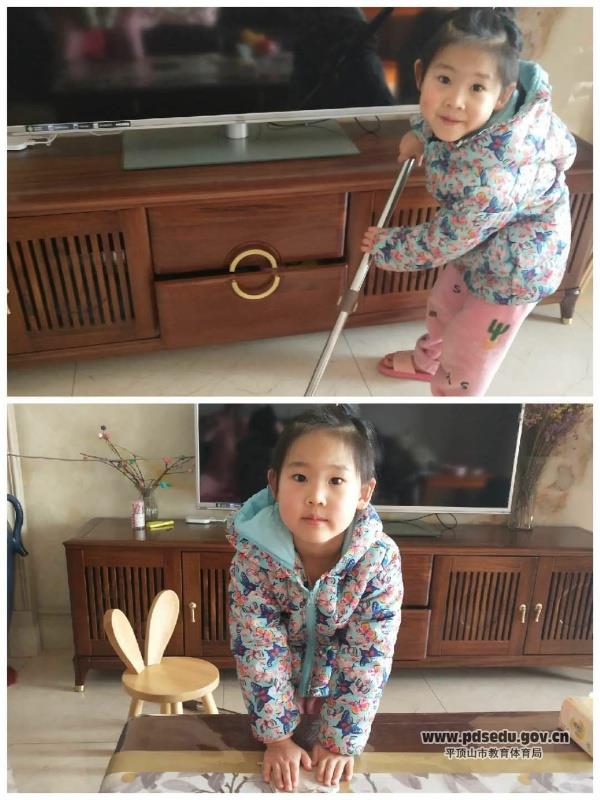平东幼儿园的小朋友也不例外,2月21日,他们在孙老师的引导下,摇身变成生活小能手,帮爸爸妈妈做起了家务,主动担当起家庭小主人的角色。瞧,有的孩子叠衣服、叠被子、卷袜子,整理内务;有的孩子擦桌子、浇花做起了家务;还有的拿起扫帚清洁卫生……干得不亦乐乎。很多家长,通过微信群给老师发来信息:“孩子今天突然变得更懂事了,感谢老师给孩子分享了这节生动的生活劳动课,在家就能学到整理家务的方法,自己叠袜子、叠衣服,把自己的物品整理的干干净净的。”