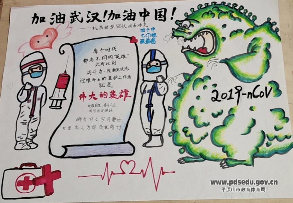 在疫情面前,市四十中学学生虽然“在家上学”,不能相见,但他们用自己手中的画笔,发挥特长,以笔化情,号召大家齐心协力,共同抗疫,实现一个中学生的家国情怀!