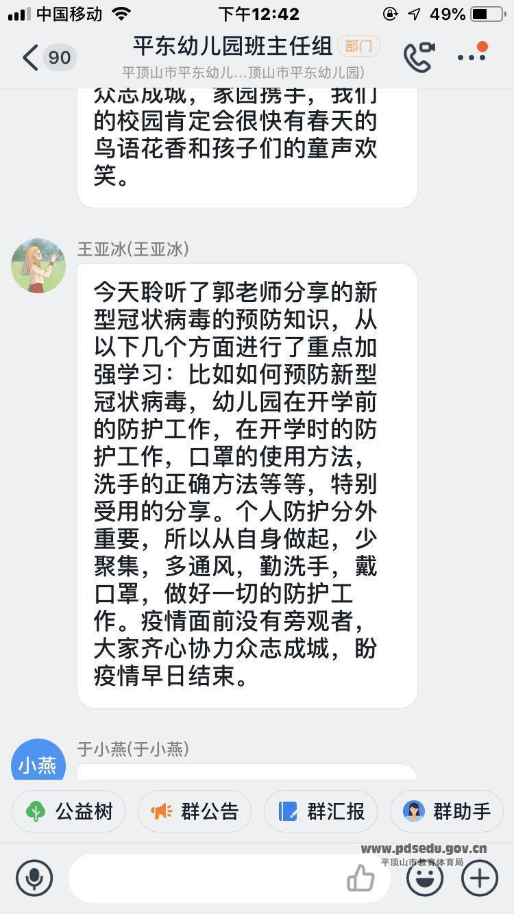平东幼儿园一向重视对教师的学习培训,特殊时期,采用钉钉直播的方式,让大家更加珍惜学习的机会!此次活动,也是为平东幼儿园接下来的开学工作奠定基础,提高全园教职工抗击病毒、自我保护的意识!我们坚信,以习近平同志为核心的党中央坚强领导,有广大人民群众的团结奋战,有广大教师的协作奉献,疫情阴霾终将散去,明媚春天定将到来。