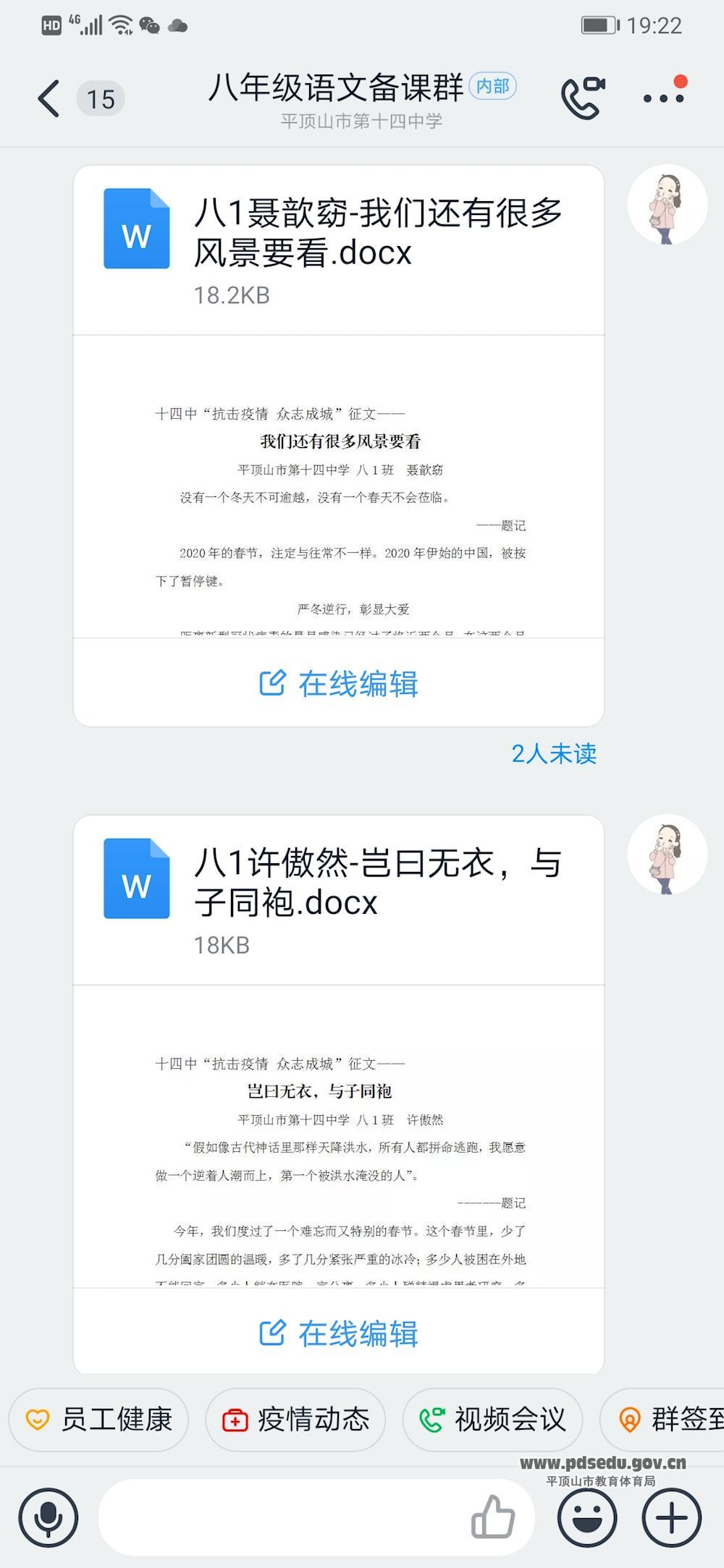 活动通知一经发出,语文老师们迅速行动,布置任务、线上指导。同学们从所见所闻身边小事写起,用文字记录下这场没有硝烟的战争中那些令人感动的瞬间。