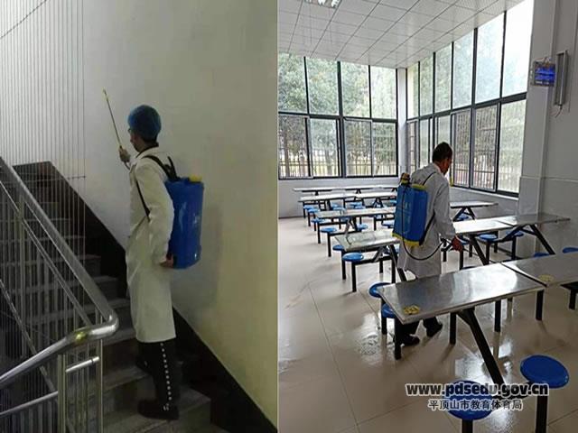 彻底消杀,杜绝病毒。伙食处组织员工对食堂进行彻底的消杀工作。工作人员对操作间、餐厅等内部空间通过喷洒消毒剂进行了全面消毒。对食堂的所有餐具和容器采用包括煮沸、蒸汽等热力方式进行消毒。