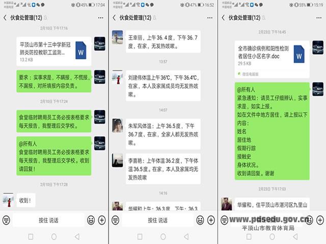 信息上报,杜绝疏漏。疫情期间,根据上级和学校的统一部署,伙食处利用网络平台认真统计员工各项信息,及时了解员工及家人近期的外出情况,要求员工不得外出,减少感染风险,并让员工每天汇报两次体温,及时了解他们的健康情况。