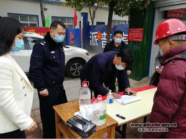 上午九点,史英副局长一行来到学校,门卫师傅严格执行疫情期间的学校规定,一一为他们量体温、用酒精喷洒鞋子,并进行详细登记。