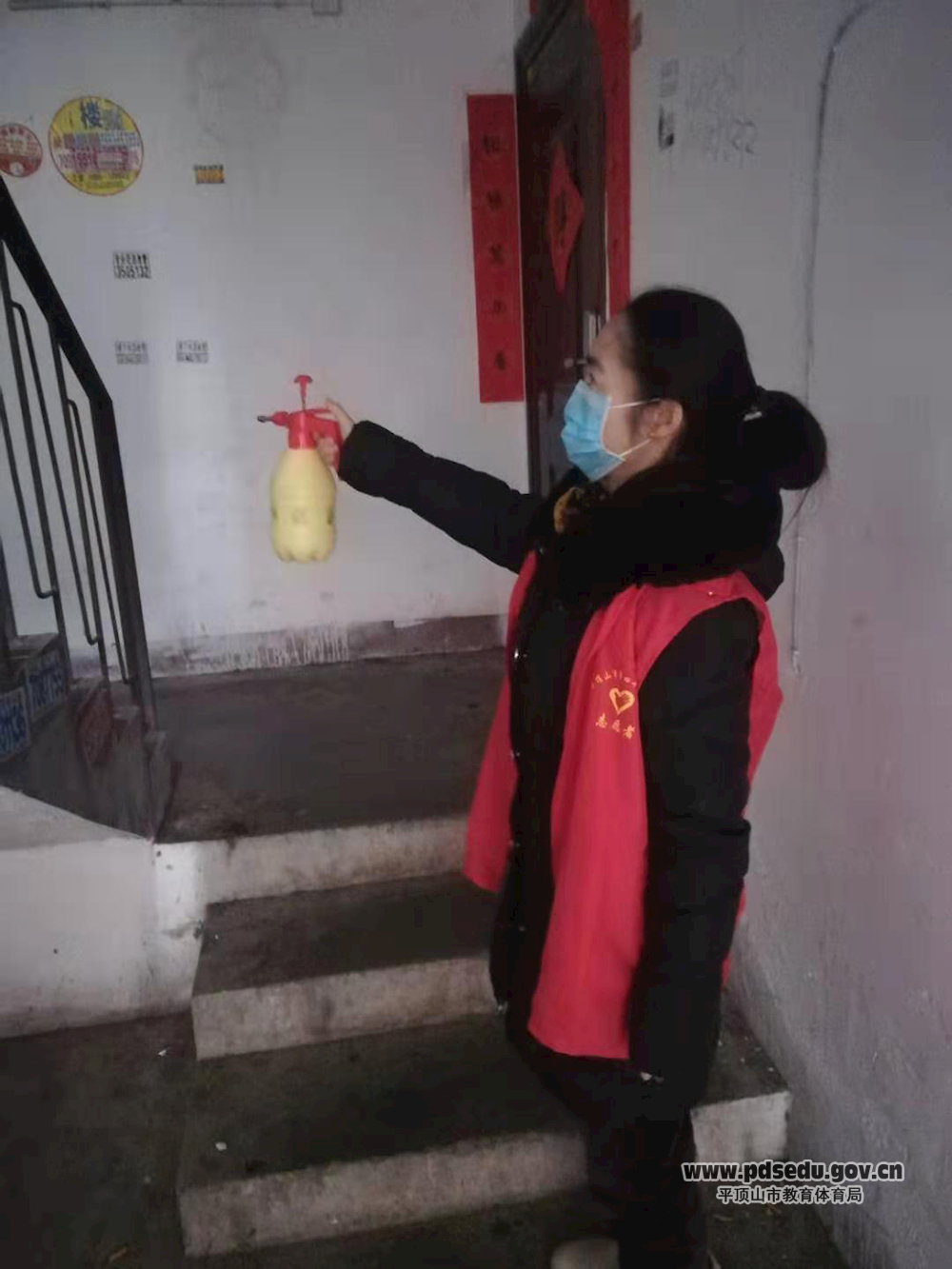 党支部带领党员志愿者对家属院的楼梯门洞等进行消毒