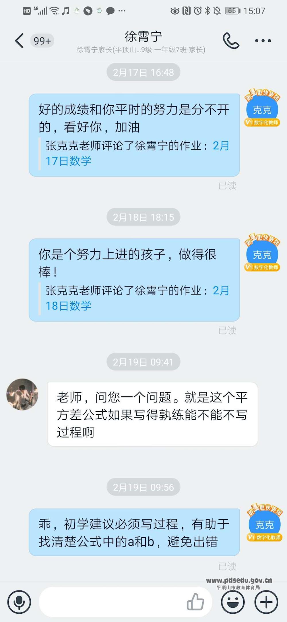 尽管手机、电脑批改作业的难度很大,但是每位老师尽最大努力做到:作业全批全改,及时反馈给学生;针对个别问题,单独辅导,争取做到不落下一个学生。七年级的靳守敏老师是老教师,平时就经常帮助年轻人,这次她在老家手机信号很不好,但仍坚持每天听课,坚持作业全批全改,学生个别问题单独辅导,没有落下一个学生。