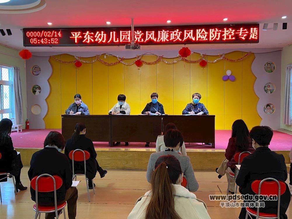 首先,平东幼儿园书记赵惠芳总结,疫情期间全体党员及中层以上领导在执纪检查、疫情宣传、信息摸底排查、防疫物资准备、线上教学等各方面所做的努力。接着,副书记李凤仙传达市教育体育局党组下发的《中共平顶山市纪委执纪监督领导小组办公室关于进一步做好廉政风险排查工作通知》文件精神,要求全体中层及以上领导干部和全体党员,通过自己查找、听取建议、群众帮忙等多种形式,认真查摆理清职权、规范用权、业务流程、制度建设等方面的风险点,严格做到科学预判、防范在先、责任明确、统筹兼顾。