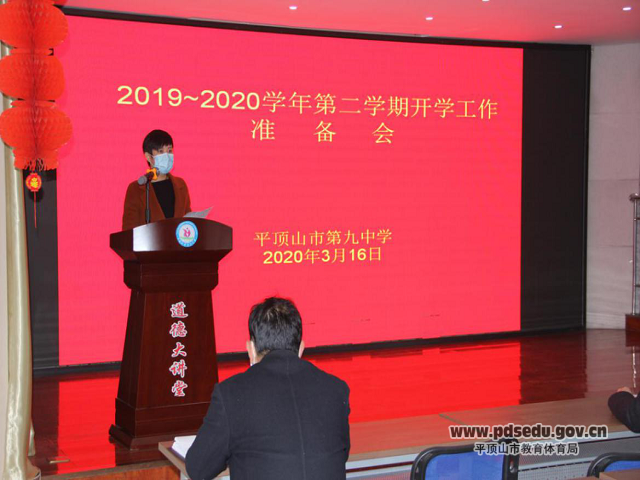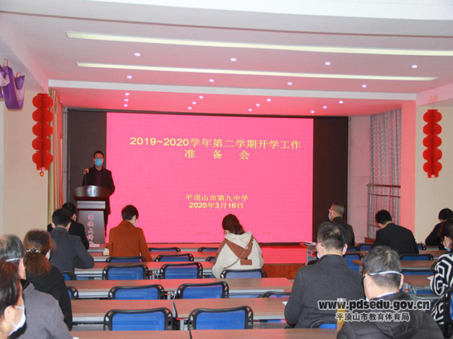 | 繁体 | 网站已支持ipv63月16日上午8:30,根据市教体局统一安排,按照3月15日下午校长办公会决议部署,市九中在六楼演播厅召开“2019-2020学年第二学期开学工作准备会”,学校全体中层以上干部参加了会议。