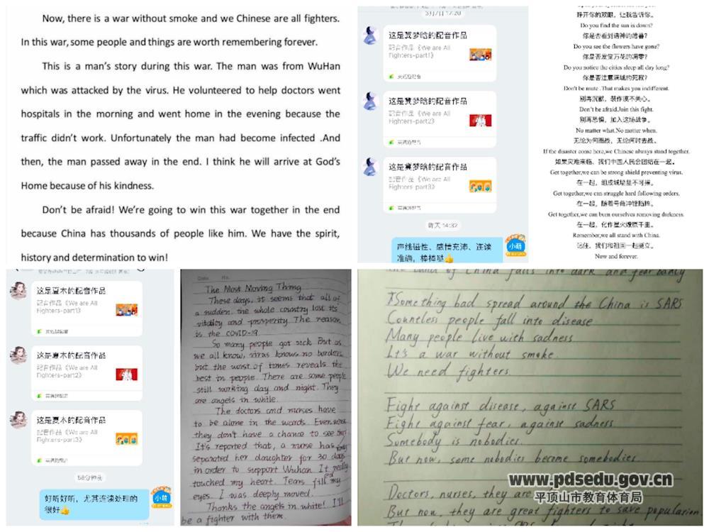 深情朗诵传递着信念和力量,几言小诗展示着的信心和勇气,图文海报号召着不屈和坚守,百字作文表达着敬佩与传承。每个作品的背后都离不开孩子们的用心创作和老师们的悉心指导。孩子们的这份热情和专注如清泉般激励了老师们的初心,尤其是在这样一个特殊的时期,显得弥足珍贵。