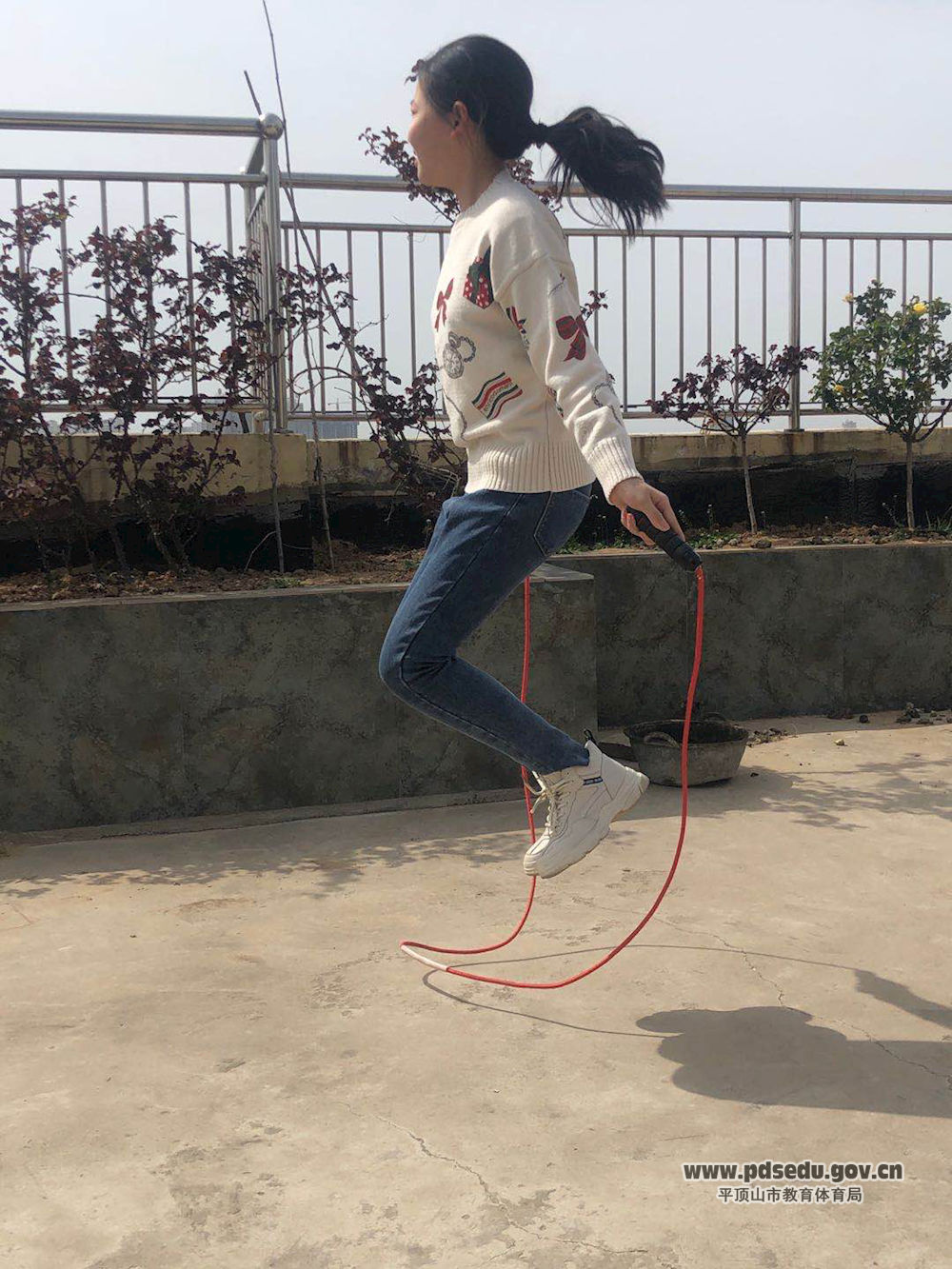?大课间时间到,跳绳、仰卧起坐、眼保健操……统统安排起来!强健的体魄才能抵御病毒的侵袭。