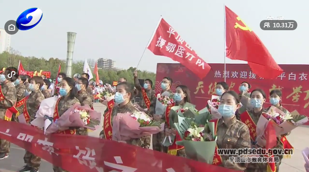 “疫情就是命令,防控就是责任!”在湖北和武汉人民遭受疫情的危急时刻,援鄂医疗队响应习近平总书记和党中央的号召,带着白衣天使的神圣职责,带着鹰城人民的深情厚谊,闻令而动、驰援湖北、携手战“疫”。在武汉的几十个日日夜夜,他们与来自全国各地的医护人员一道,坚守在疫情防控第一线、战斗在抗击病毒最前沿,与时间赛跑,与病魔较量,用坚守传递希望,用生命守护生命,以崇高的医德、精湛的医术、过硬的作风,出色完成了救治任务,为鹰城争了光、添了彩。市四十三中全体师生向英雄们致敬。