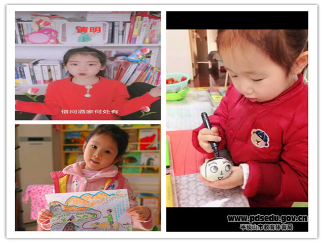 活动一:教师针对当前疫情形势,多方面搜集材料,制作出了课件和视频。孩子们通过教师的视频分享,配合以爸爸妈妈的耐心讲解知道了清明节的由来,也了解了清明节的相关习俗。