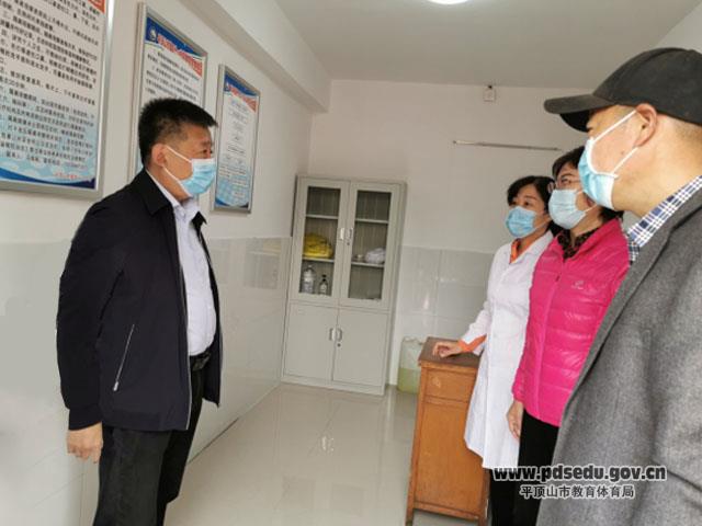 视察中,邱红标局长先对体温检测区、临时隔离室、隔离室进行实地查看,询问校医隔离防控的准备情况,随后他来到教室,查看教室防控网格、桌椅摆放,详细询问了解学校九年级学生人数、教师人数、分包责任情况,听取市四十一中学党支部书记、校长杨萍关于九年级开学报到流程、应急处理预案、开学后校园防控工作和防疫物资储备等情况。