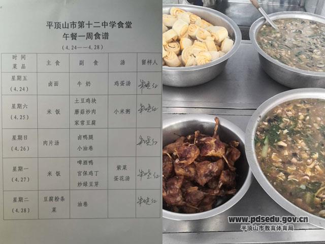 膳食处根据时令、学生身体成长的需要制定食谱。食谱每周公示在膳食处公示栏、餐厅门口及微信群内。在物价不断上涨的情况下,食堂保证每餐都有肉蛋奶等食材,做到荤素搭配,营养均衡,味道可口,深受学生及家长好评。