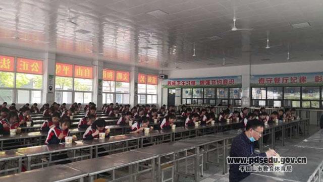 在全体师生的共同努力下,学生就餐平稳有序,就餐做到快、静、齐,有效地避免了学生就餐的交叉与拥挤。食堂的饭菜荤素搭配、营养均衡、味道可口,赢得广大学生、家长肯定。